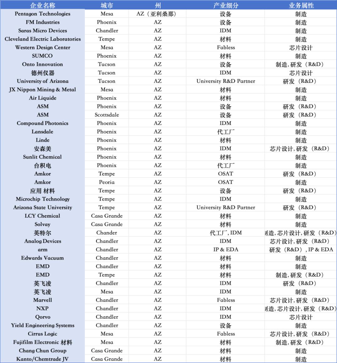 亚利桑那州半导体生态布局情况