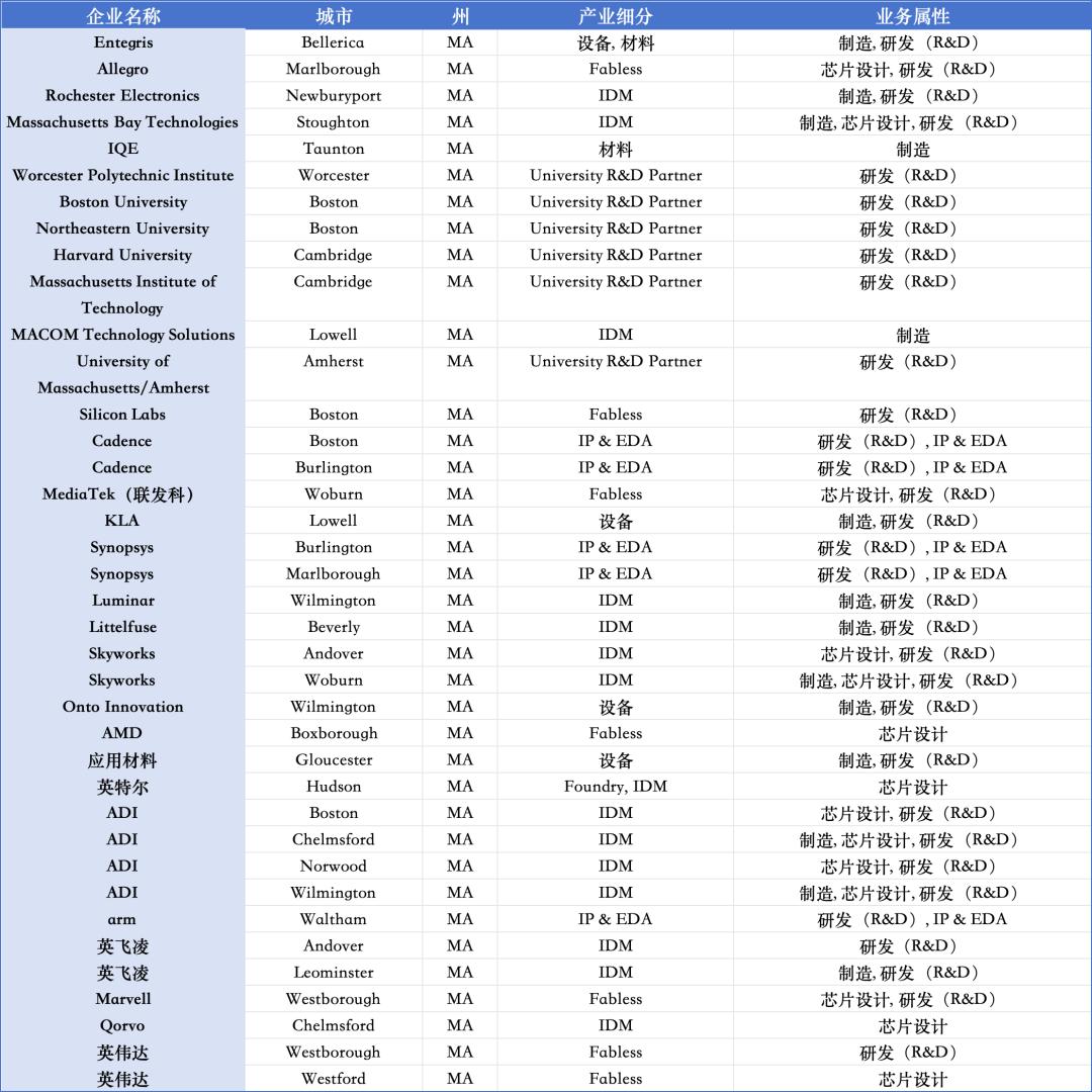 马萨诸塞州半导体生态布局情况