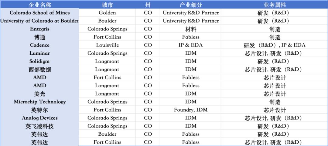 科罗拉多州半导体生态布局情况