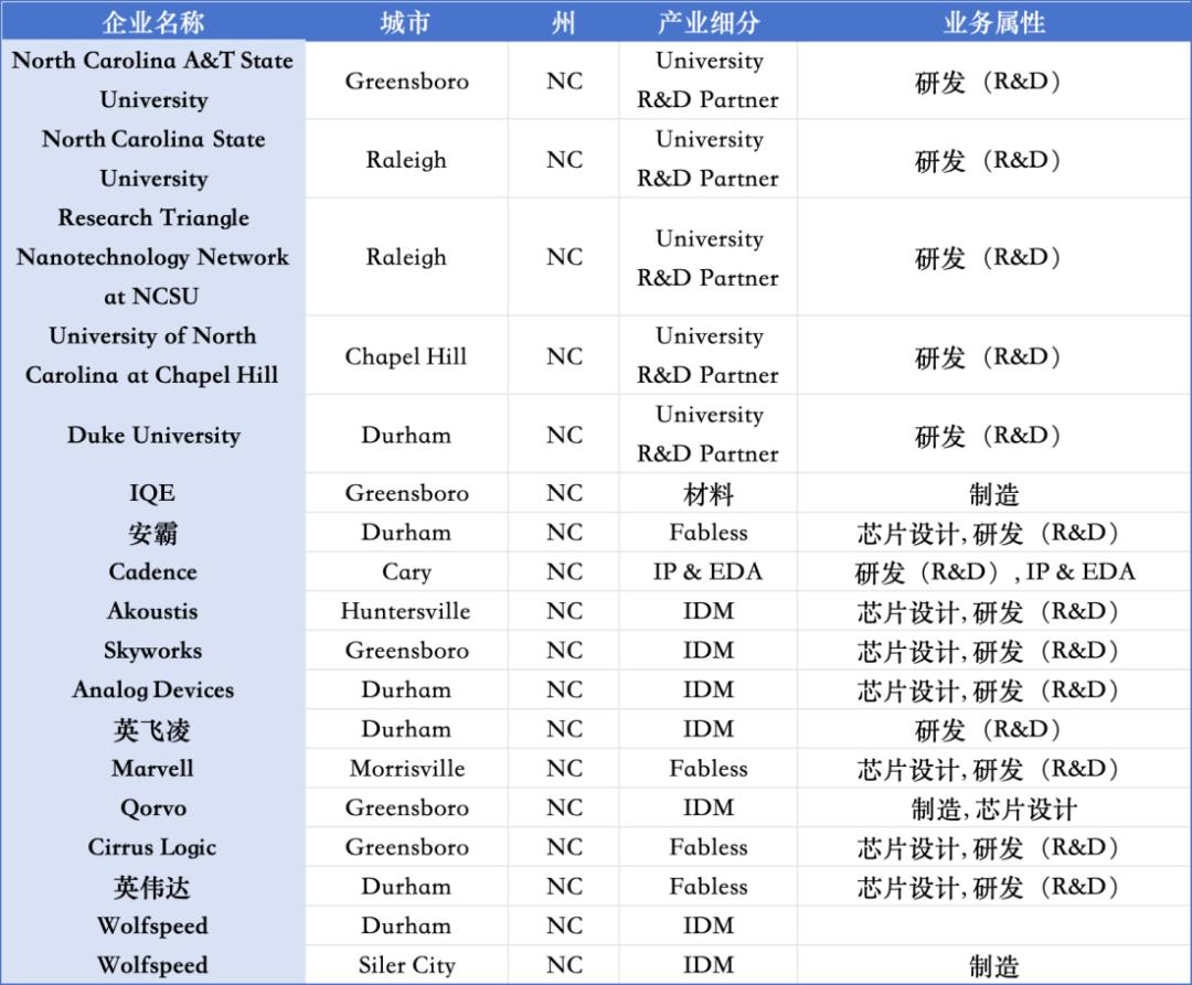北卡州半导体生态布局情况